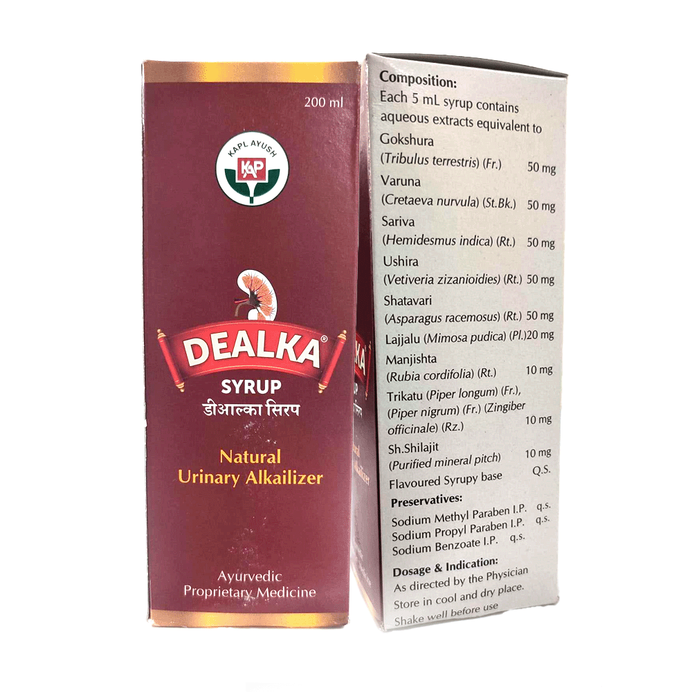 Dealka Syrup acts as a natural urinary alkalizer, helping to maintain the pH balance of urine. This property makes it effective in preventing and managing conditions like urinary tract infections and acid-induced discomfort. By reducing the acidity in urine, it supports kidney health and promotes smoother urinary functions. Its natural composition ensures gentle action without the harsh effects of synthetic medications, making it a reliable option for long-term use in maintaining urinary health.